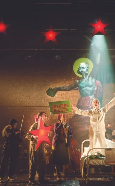 The libretto is co-written by Michael Gallen with poet Annemarie Ní Churreáin and playwright Carys D Coburn, and the production brings together a team of renowned Irish artists and rising international stars led by director Tom Creed and conductor Fiona Monbet. Singers and instrumentalists play a range of characters from patients and strikers to Marx and Jehovah, shape-shifting between work routines, football matches, negotiations, dances - in a dynamic that is both playful and uncanny. Over time we discover how Celine’s fate and that of the Soviet are entwined.